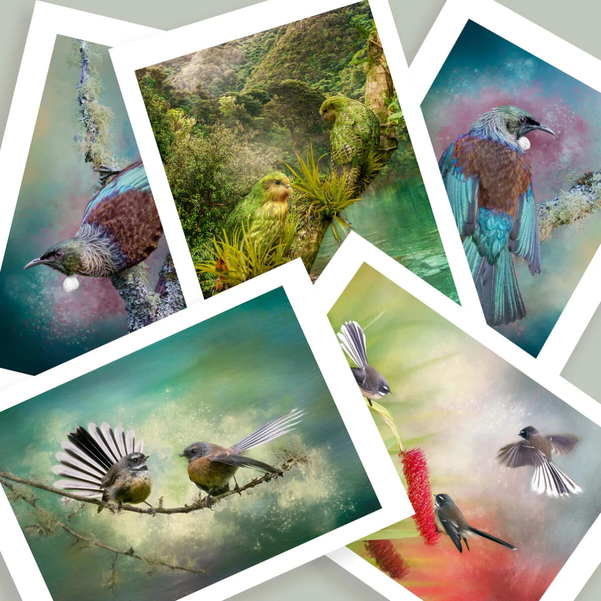 Looking for a gift or treat with a native bird twist? Get an A5 print pack featuring your favourite birds from award-winning NZ bird artist Judi Lapsley Miller. You get five prints: “A Hidden World (kākāpō)”, “Graceful Splendour (tūī)”, “Resolute Beauty (tūī)”, “Playtime (pīwakawaka)”, and “The Secret (pīwakawaka).”